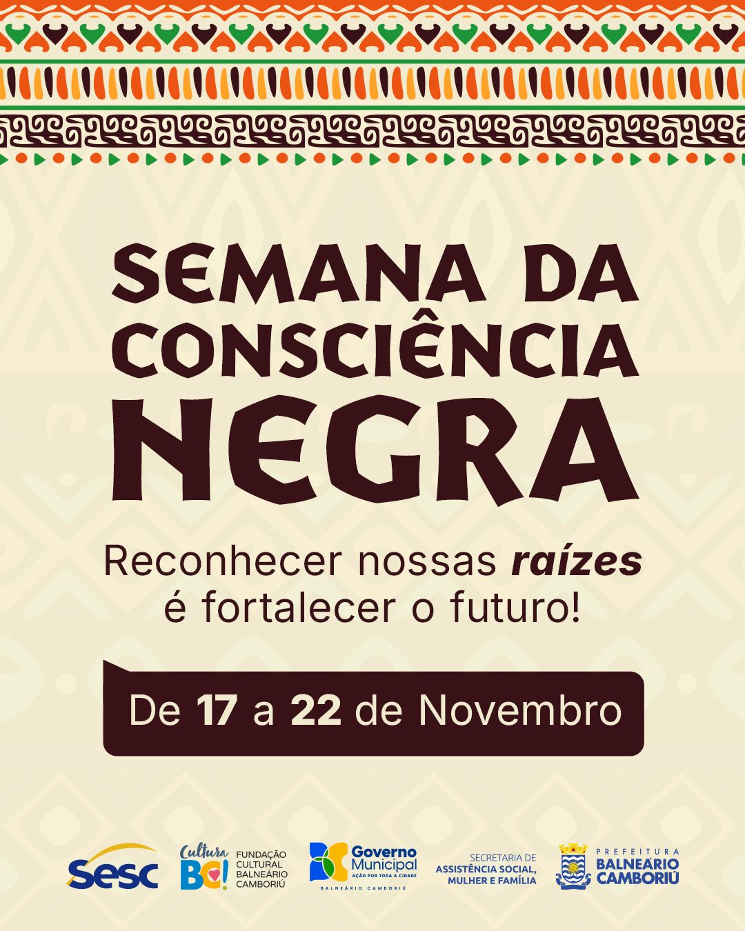 A Prefeitura de Balneário Camboriú, por meio da Secretaria de Assistência Social, Mulher e Família, promove, a partir desta segunda-feira (17), a Semana da Consciência Negra. A abertura do evento, de acesso livre pela comunidade, acontece às 19h no Teatro Municipal Bruno Nitz (Rua 300/esquina com a Avenida Central – Centro).